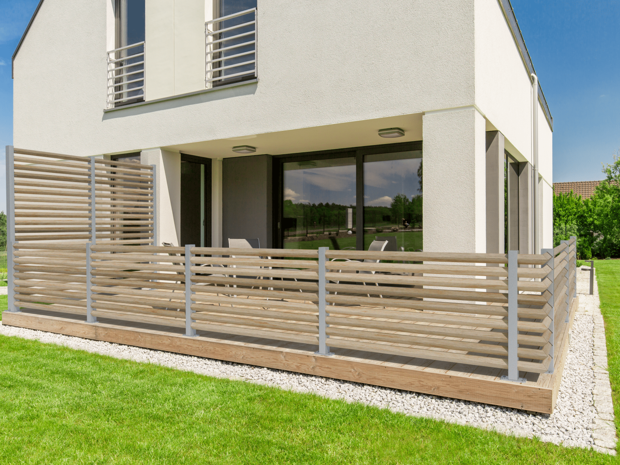 Verto convient à de nombreux aménagements extérieurs, de la délimitation de terrain au brise-vue autour d’une terrasse ou d’un spa. Ses poteaux élancés offrent un rendu léger et contemporain, loin de l’aspect massif des clôtures pleines traditionnelles.